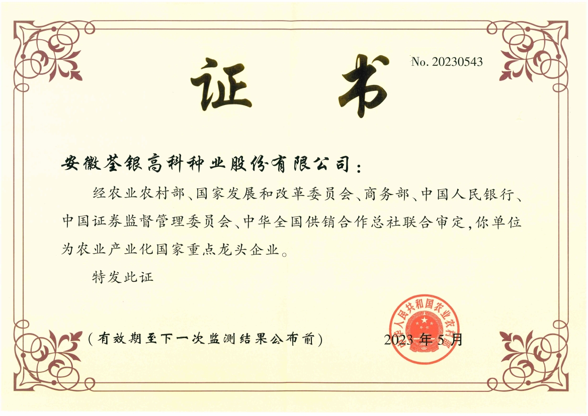 2025年07月安徽荃銀高科種業(yè)股份有限公司是一家“以種業(yè)為核心、農(nóng)業(yè)服務(wù)為延伸、探索和創(chuàng)新農(nóng)業(yè)多元化發(fā)展”的現(xiàn)代高科技種業(yè)上市公司,證券代碼:300087。公司注冊(cè)資金9.47億元,系“中國(guó)種業(yè)領(lǐng)軍企業(yè)、農(nóng)業(yè)產(chǎn)業(yè)化國(guó)家重點(diǎn)龍頭企業(yè)、國(guó)家高新技術(shù)企業(yè)、農(nóng)業(yè)部首批農(nóng)作物種子育繁推一體化企業(yè)、中國(guó)種業(yè)信用明星企業(yè)"。在國(guó)內(nèi)控股子公司20多家,在國(guó)外設(shè)立分支機(jī)構(gòu)4家,良種銷售至全國(guó)20多個(gè)省(市、區(qū)),出口覆蓋20多個(gè)國(guó)家與地區(qū),種業(yè)綜合實(shí)力、雜交水稻研發(fā)、推廣及海外業(yè)務(wù)規(guī)模均居全國(guó)種子企業(yè)前2位。