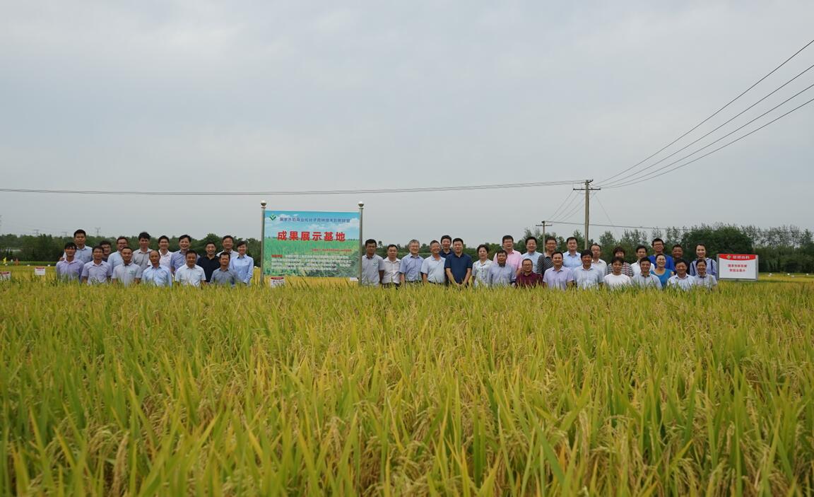 ??? 10日上午,在廬江縣郭河和蜀山區南崗舉辦的聯盟成果展示會上,主要展示了聯盟單位間合作選育的優勢水稻新品種及新材料。在今年高溫、臺風等劇烈天氣影響下,品種的表現良好,尤其是聯盟單位合作選育的秈粳交水稻品種中禾優1號表現突出,獲得參會專家的一致好評。