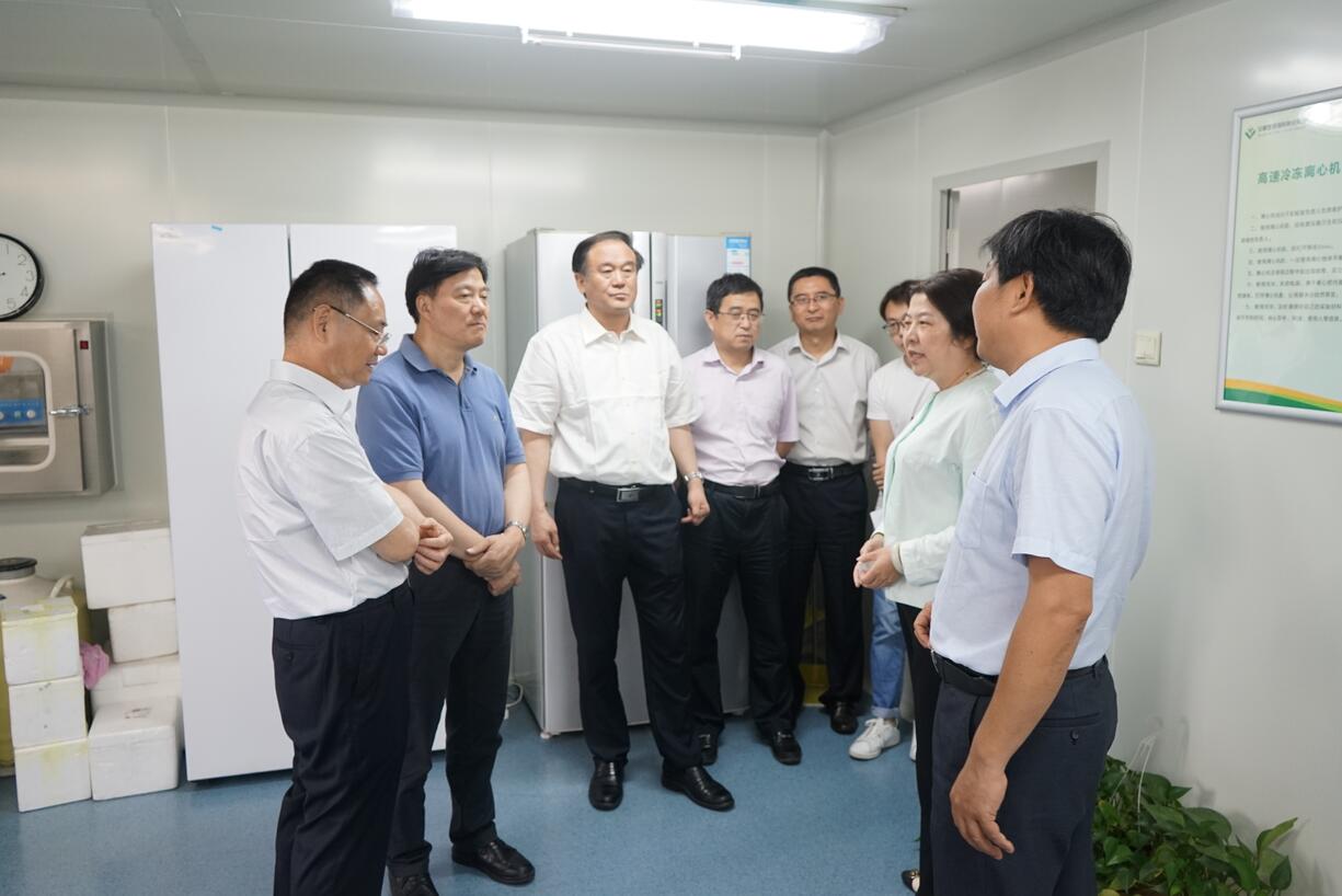 ??? 2019年6月18日上午,上海市政協(xié)常委、市政協(xié)農(nóng)業(yè)和農(nóng)村委員會主任邵林,上海市政協(xié)常委、農(nóng)業(yè)和農(nóng)村委員會常務(wù)副主任、市農(nóng)科院黨委書記、院長蔡有銘,市政協(xié)常委、市商務(wù)委原副主任、市糧食局原局長、黨組書記盞國平,市農(nóng)業(yè)和農(nóng)村委員會副主任王國忠等領(lǐng)導一行蒞臨荃銀高科參觀考察。合肥市政協(xié)主席、黨組書記韓冰,安徽省政協(xié)農(nóng)業(yè)和農(nóng)村委員會專職副主任朱云、辦公室調(diào)研員蘇從江,市政協(xié)常委、市政協(xié)農(nóng)業(yè)和農(nóng)村委員會主任孫功兵等領(lǐng)導陪同考察。荃銀高科副董事長兼總經(jīng)理張琴、副總經(jīng)理兼首席技術(shù)官張從合等熱情接待了考察團一行。