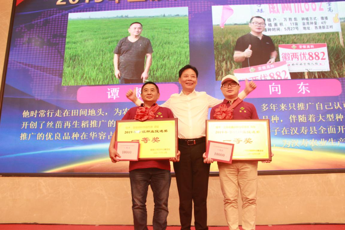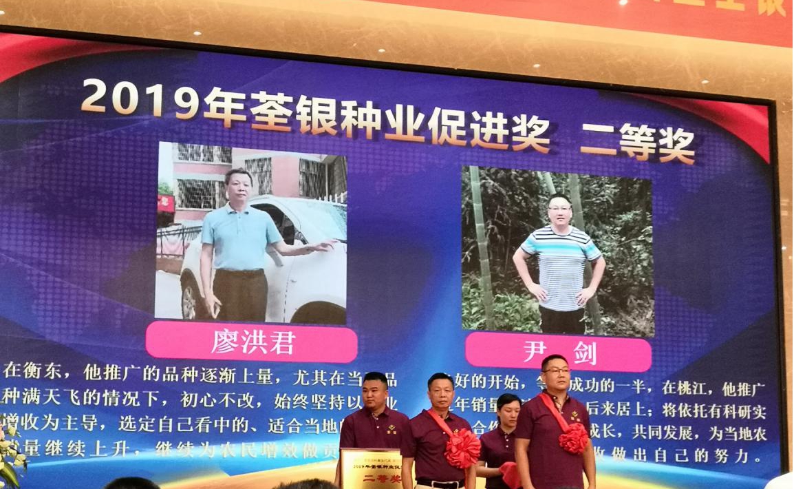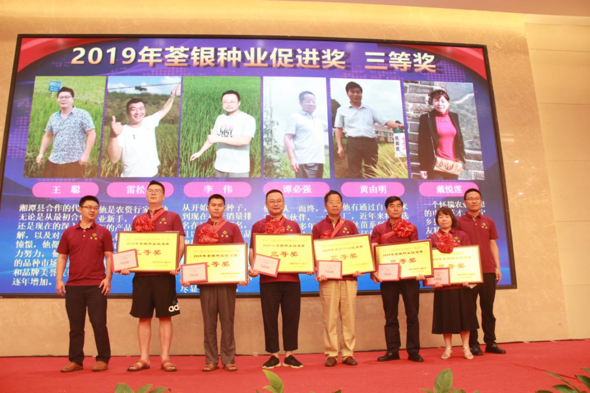 ?? ?隨后,張海銀種業基金會鄭滿生監事宣讀了張海銀種業基金會“荃銀種業促進獎”2019年頒獎決定文件。大會向38名在優質水稻推廣和良種服務等方面取得優異成績的個人頒發了“荃銀種業促進獎”專項獎。